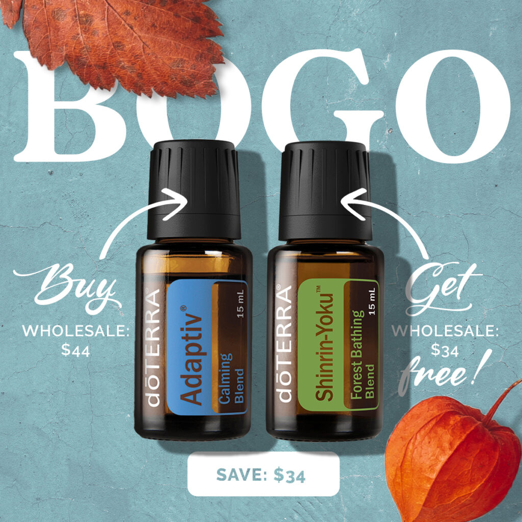 BOGO Price: $256 (you save $280) + FREE Bamboo storage Box and Osmanthus roller (+ contact me for a promo code for a free Diffuser, Balance 15ml and Adaptiv roller if you are new to doTERRA!)
